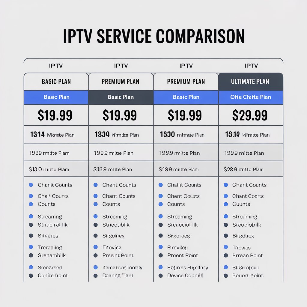 A grid helps you weigh offers visually when you compare IPTV pricing USA. Example layout: